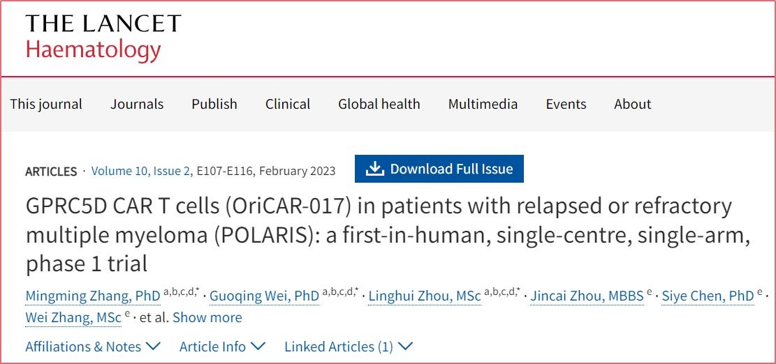 CT071是基于科济药业CARcelerate®专有平台开发的靶向GPRC5D的CAR-T候选产品。除本次报道的复发/难治性多发性骨髓瘤适应症外,公司还正在开展针对新诊断多发性骨髓瘤的临床研究。