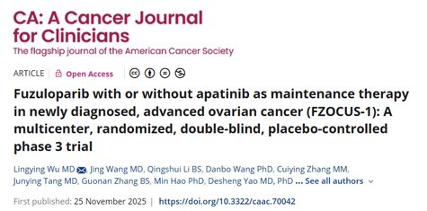 卵巢癌作为死亡率最高的妇科肿瘤,全球每年新发病例约32.4万例。晚期患者5年生存率不足30%,约70% 的患者在3年内复发。FZOCUS-1研究的成功,为延长患者无化疗间期、改善长期预后提供了重要解决方案。