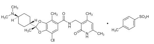 主要成分:(2R)-7-氯-2-[反式-4-(二甲基氨基)环己基]-N-[(4,6-二甲基-2-氧代-1,2-二氢吡啶-3-基)甲基]-2,4-二甲基-1,3-苯并二恶茂-5-甲酰胺单(4-甲基苯磺酸酯)