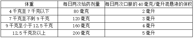 表:非达霉素口服混悬液在儿童患者中的推荐剂量(基于体重)