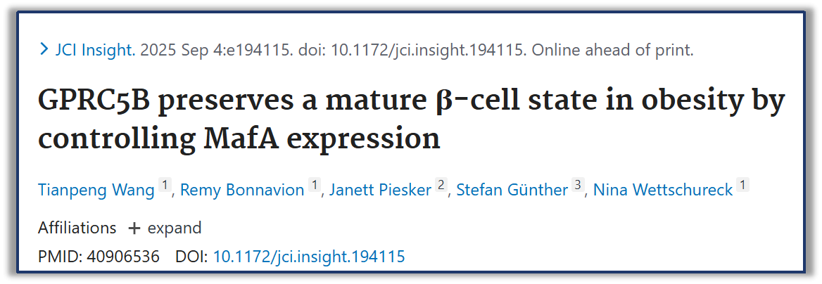 德国马普所心肺所博士后研究员王天鹏为论文第一作者及共同通讯作者,Nina Wettschureck教授为末位通讯作者。研究人员表示,这一发现不仅增进了对G蛋白偶联受体在代谢调节中作用的理解,也为开发针对2型糖尿病的新型治疗方法提供了重要理论基础。