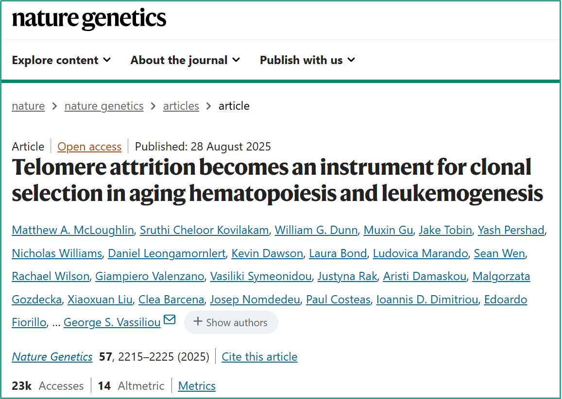 克隆性增长(CH)是指由体细胞突变驱动的造血干细胞克隆性扩增,是许多血液系统疾病和癌症的常见特征。随着人口老龄化加剧,CH的临床意义日益凸显。尽管已知端粒长度和端粒维持机制在CH发生发展中起重要作用,但其具体机制尚未完全阐明。
