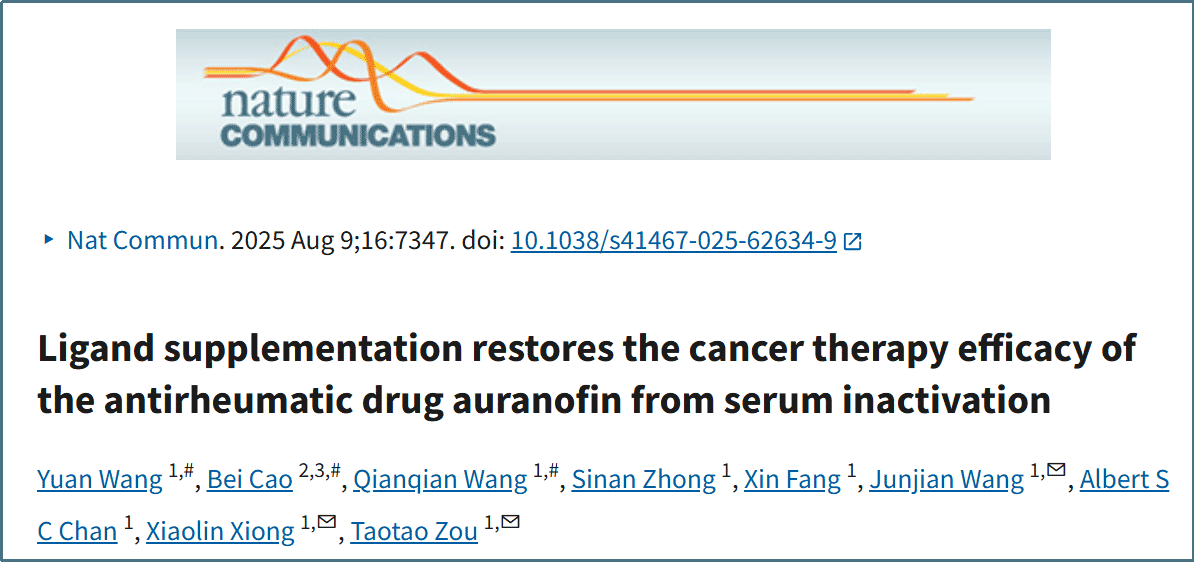 金诺芬是一种FDA批准的抗类风湿性关节炎药物,近年来在治疗晚期或复发性肿瘤的临床研究中展现出潜力。然而,该药物在抗癌领域的临床转化面临重大障碍:与血清白蛋白结合会导致其失活,使得全身给药时疗效显著降低。