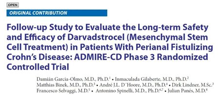 在ADMIRE-CD三期随机对照试验中,研究人员对40名患者进行了长达104周的延伸随访研究。治疗前,所有患者均接受规范的瘘管刮除和内口闭合处理,随后随机接受darvadstrocel或安慰剂单次注射。