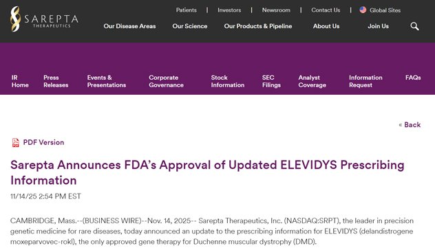 此次标签更新是FDA针对Elevidys安全性问题采取的重要措施。更新后的标签不仅添加了描述严重肝损伤和急性肝功能衰竭风险的黑框警告,还将适应症严格限制在4岁及以上、DMD基因确诊突变的门诊患者,同时取消了非卧床DMD患者的适应症。